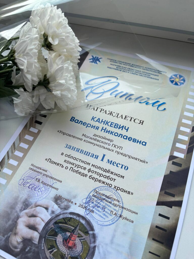Была проведена экскурсия в Музее Славы Могилевщины, а также церемония награждения победителей областного молодежного конкурса фоторабот «Память о победе бережно храня», в котором дизайнер МГКУП «УКП» Канкевич Валерия заняла первое место!